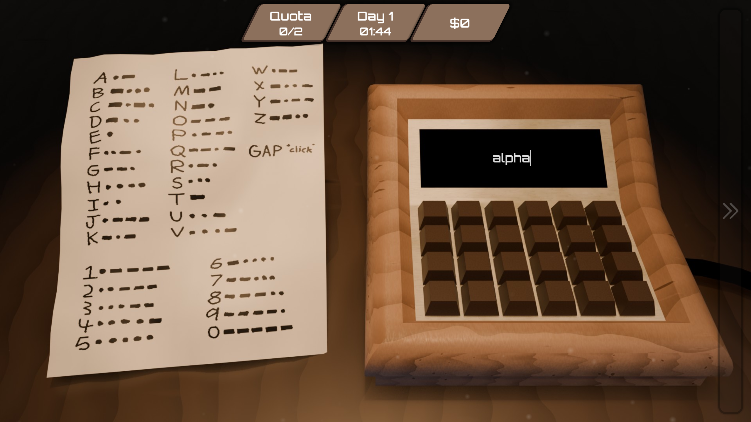 Intelligence Required is a game about gathering intelligence as a government agent in enemy territory. Locate morse code signals, translate them into plain English, and hit your daily quota. Use your earned cash to buy various upgrades that help you last longer.